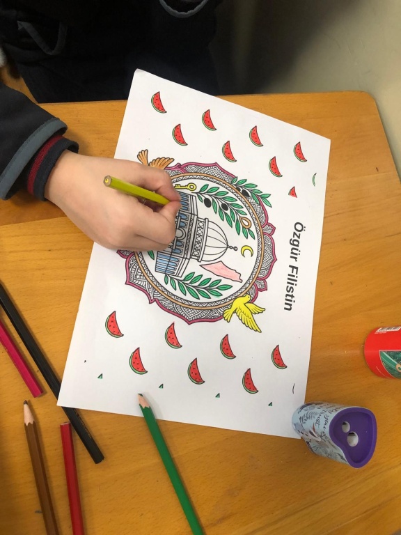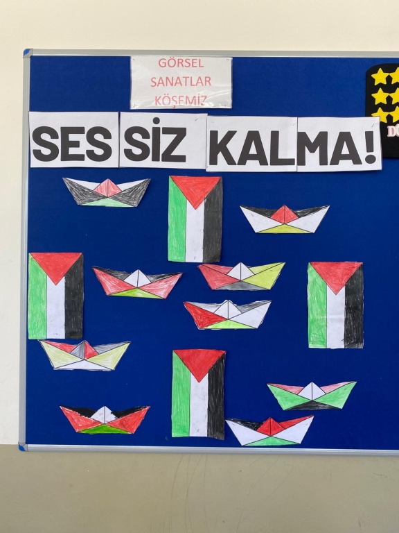 Gazze' de yaşanan acılara sessiz kalmayarak öğrencilerimizle birlikte Filistin halkının yanında olduğumuzu gösterdik.